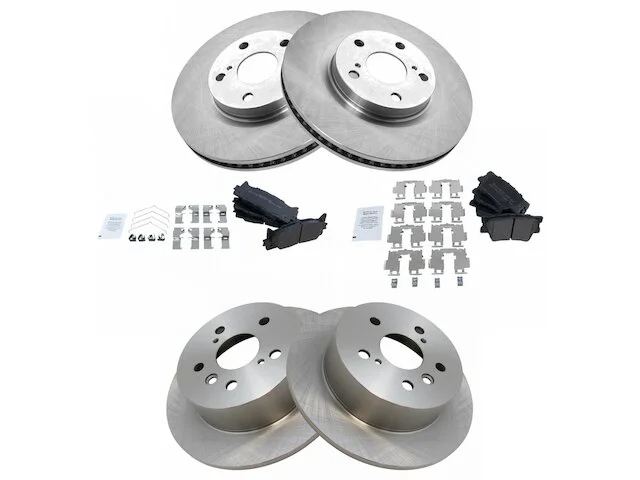 Package Contents: (2) Front Replacement Brake Rotors; (2) Rear Replacement Brake Rotors; (1) Front Semi-Metallic Brake Pad Set; (1) Rear Semi-Metallic Brake Pad Set; Brake Pad Contact Point Grease; Brake Pad Hardware